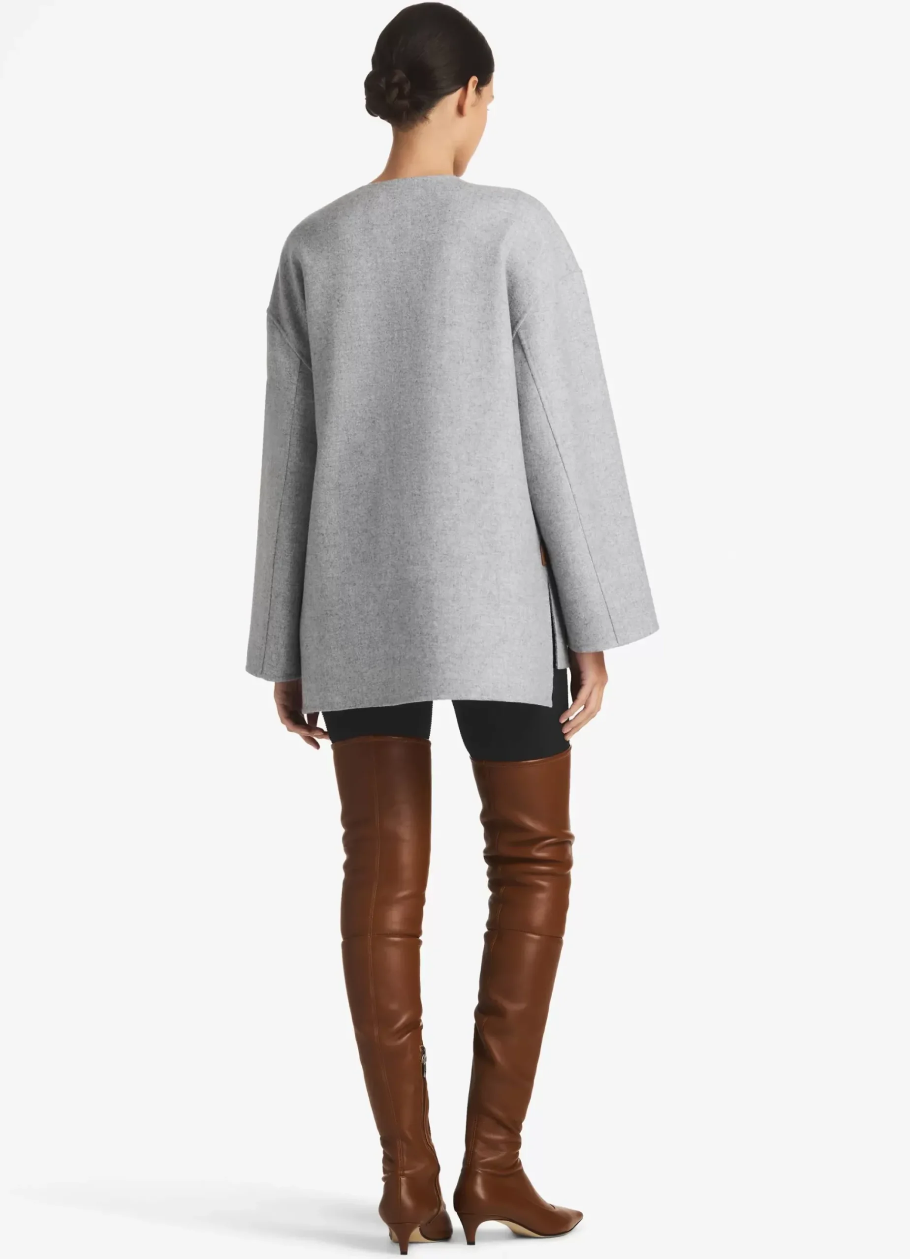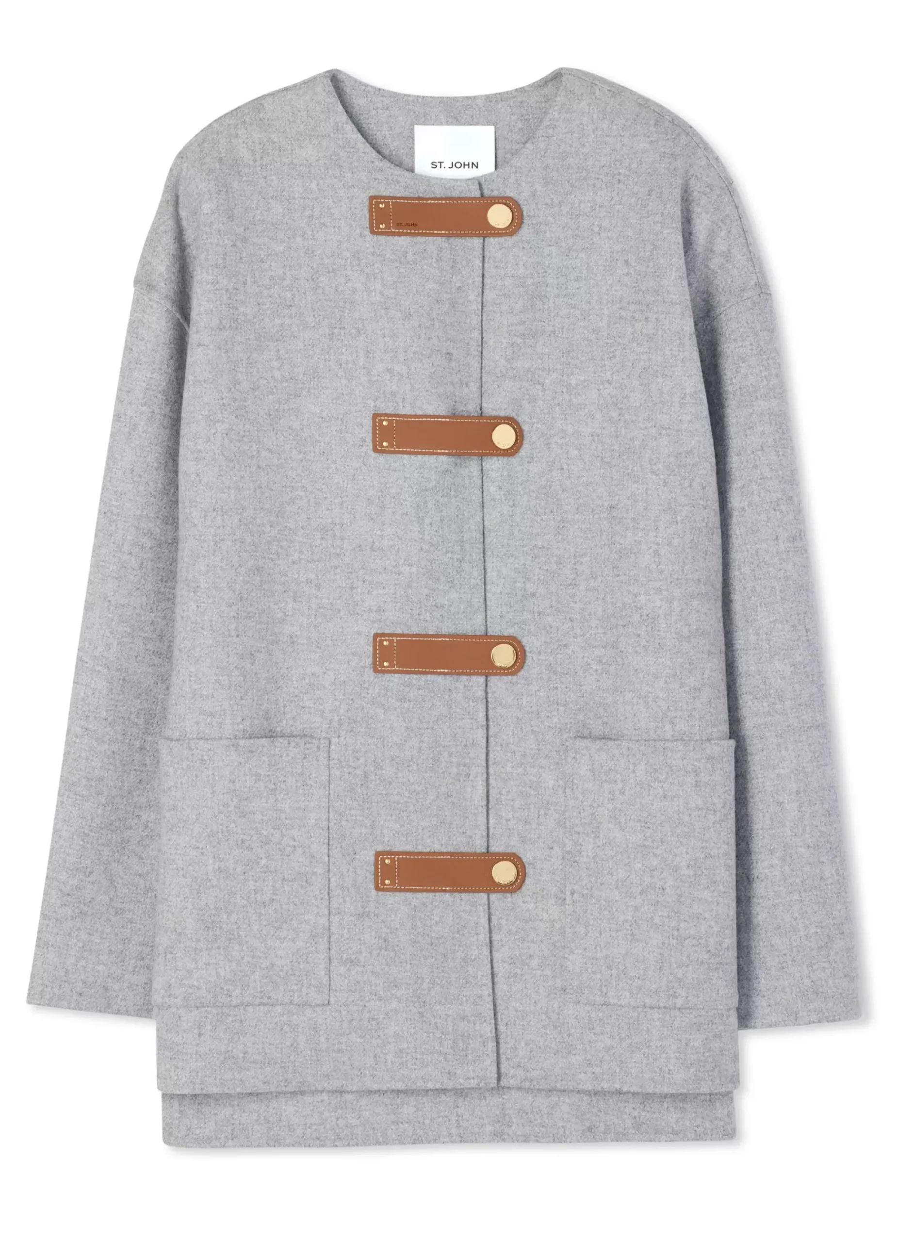 Discount St. John Double Face Wool and Cashmere Blend Tab Front Jacket Heather Gray