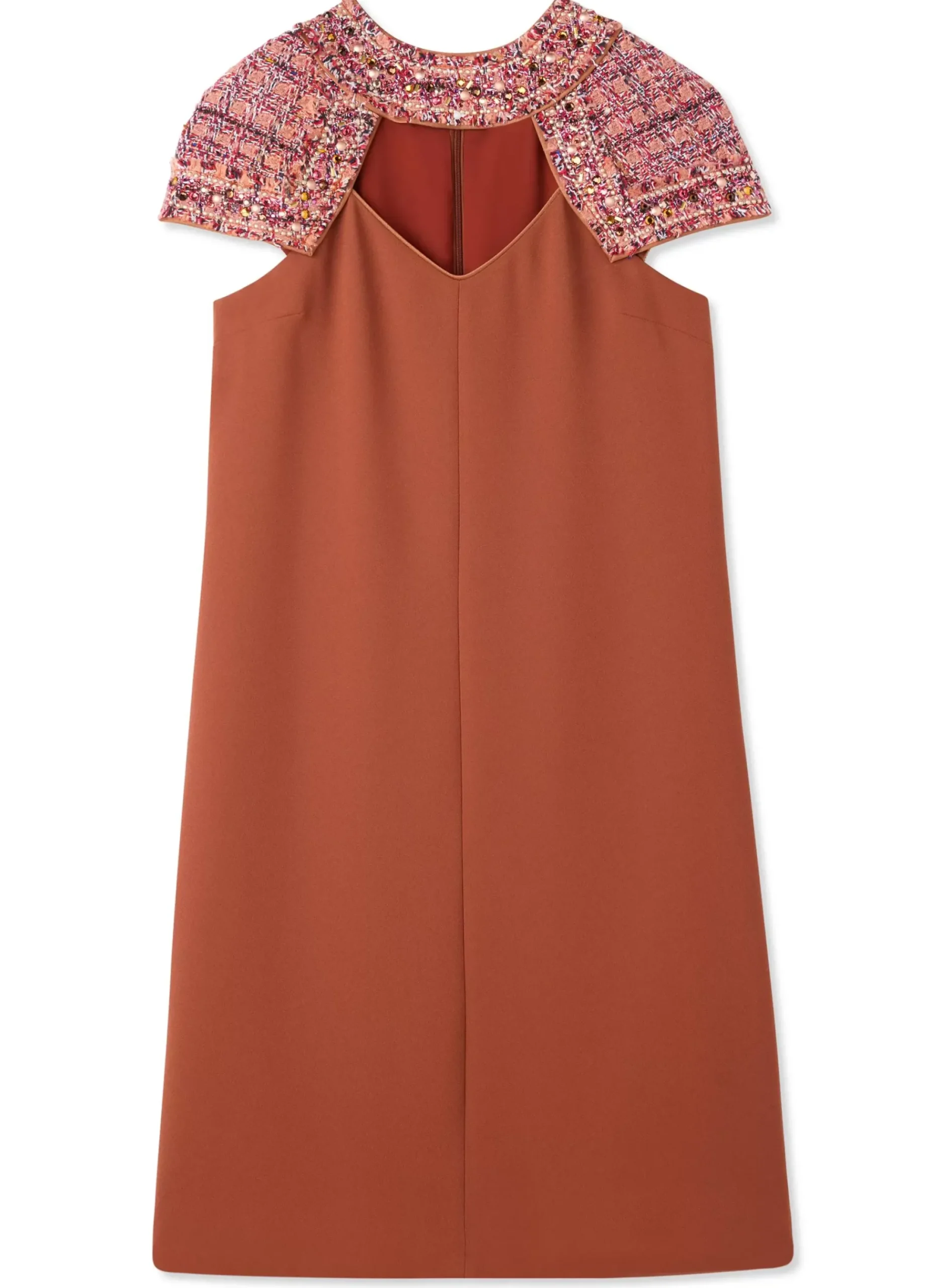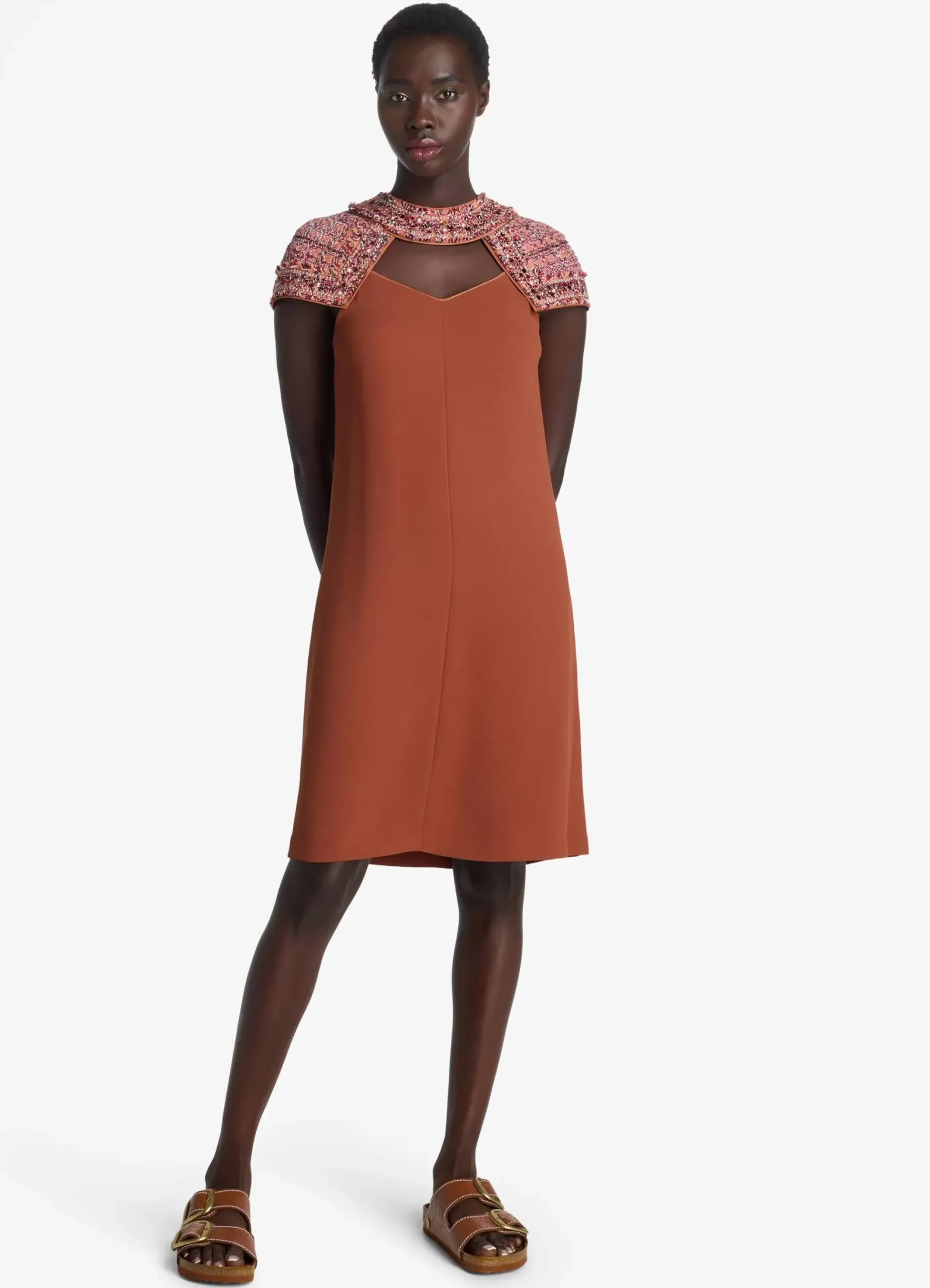 Online St. John Satin Back Crepe Embellished Collar Short Dress Brick/Cranberry Multi