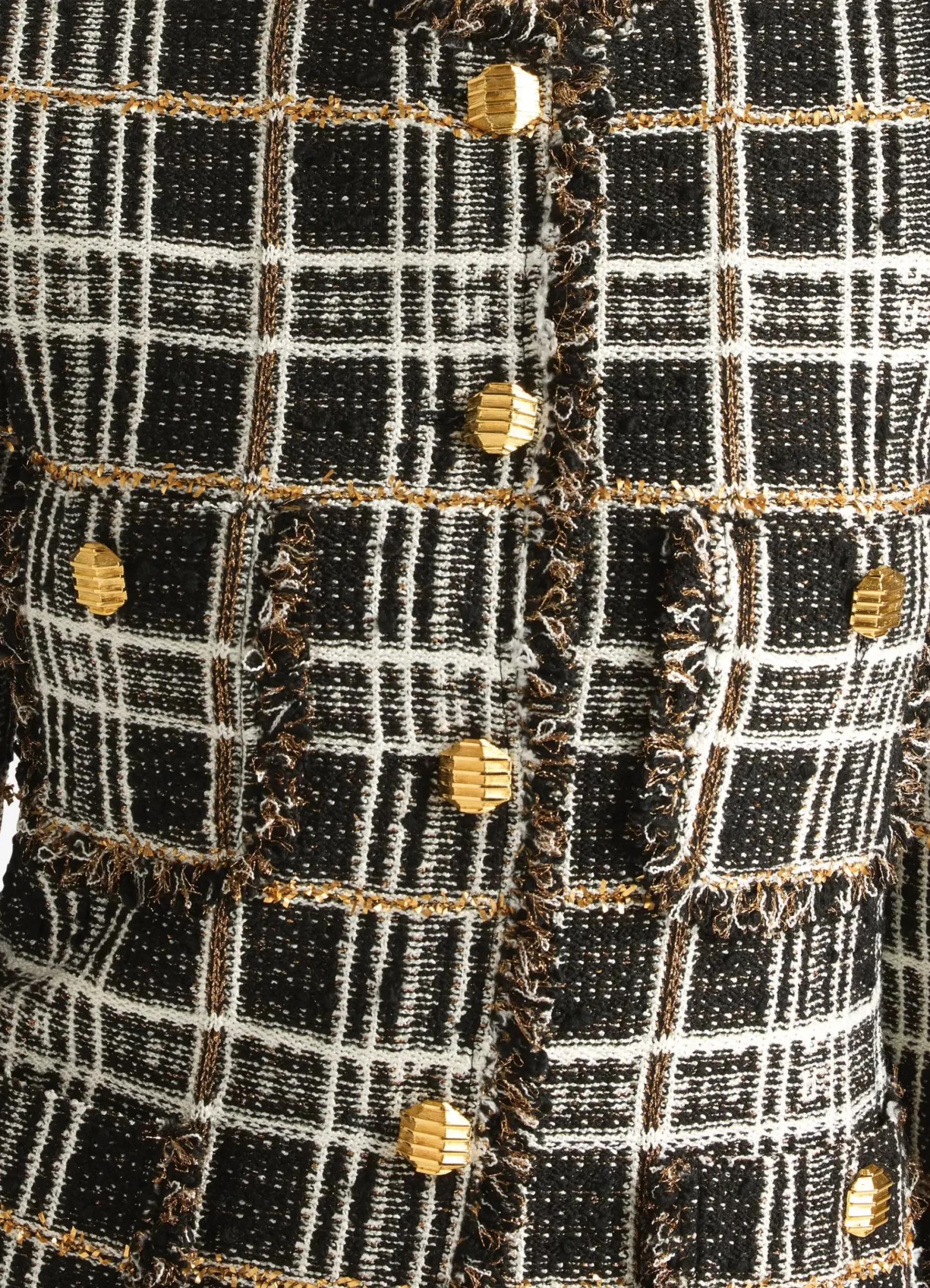 St. John Sparkle Eyelash Plaid Jacket Black/Ecru/Gold Multi