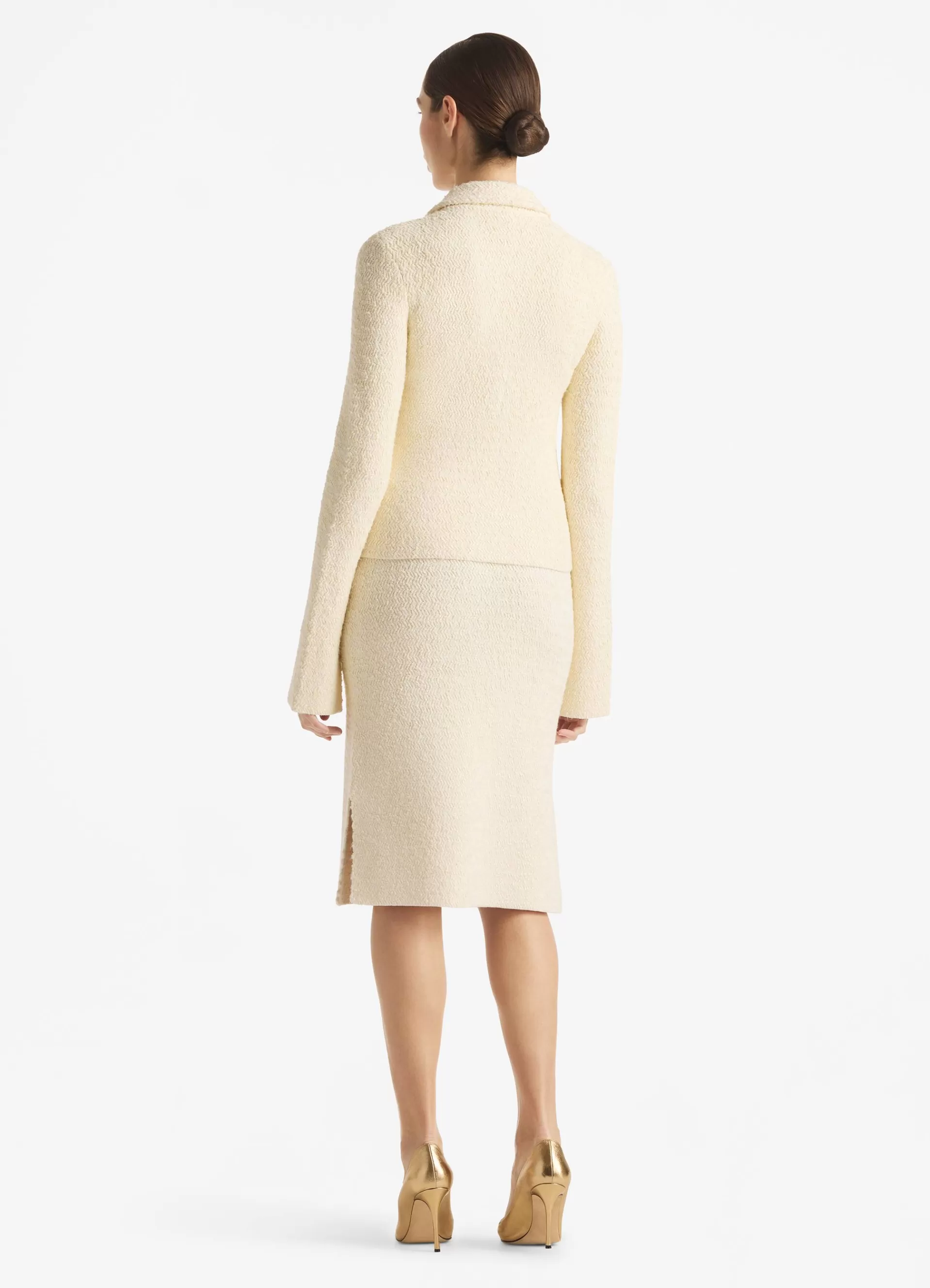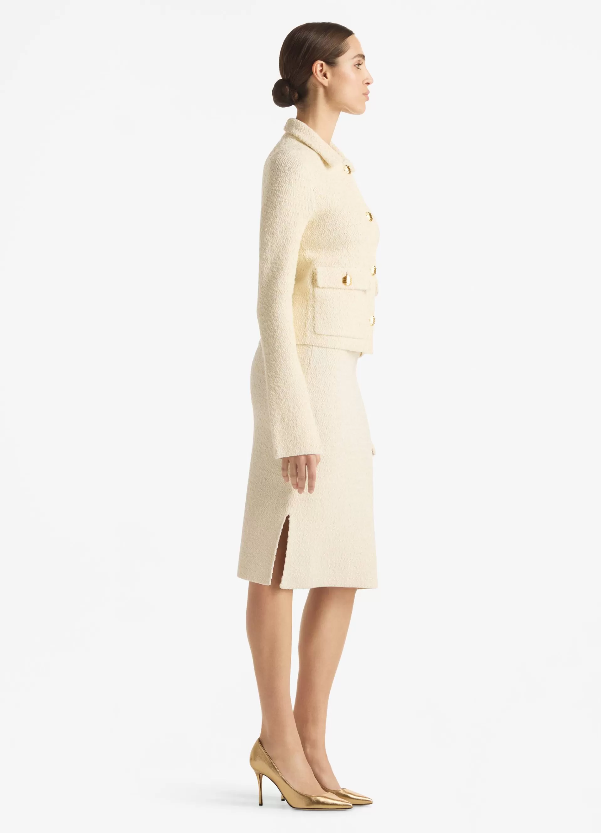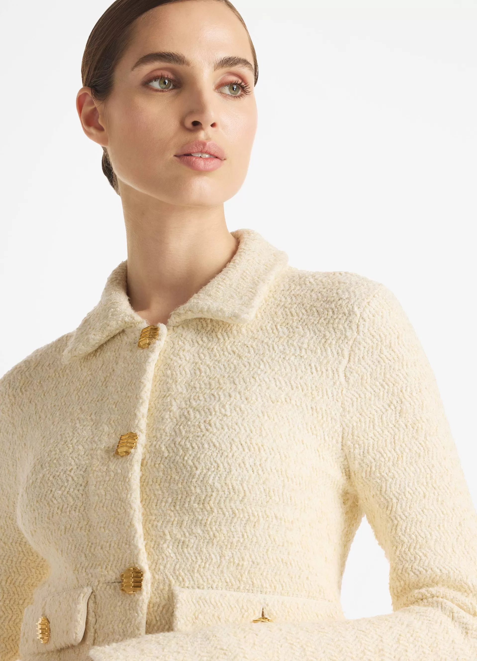 A tonal chevron pattern of the racking stitch tweed gives a subtle texture that adds interest to this most elegant…