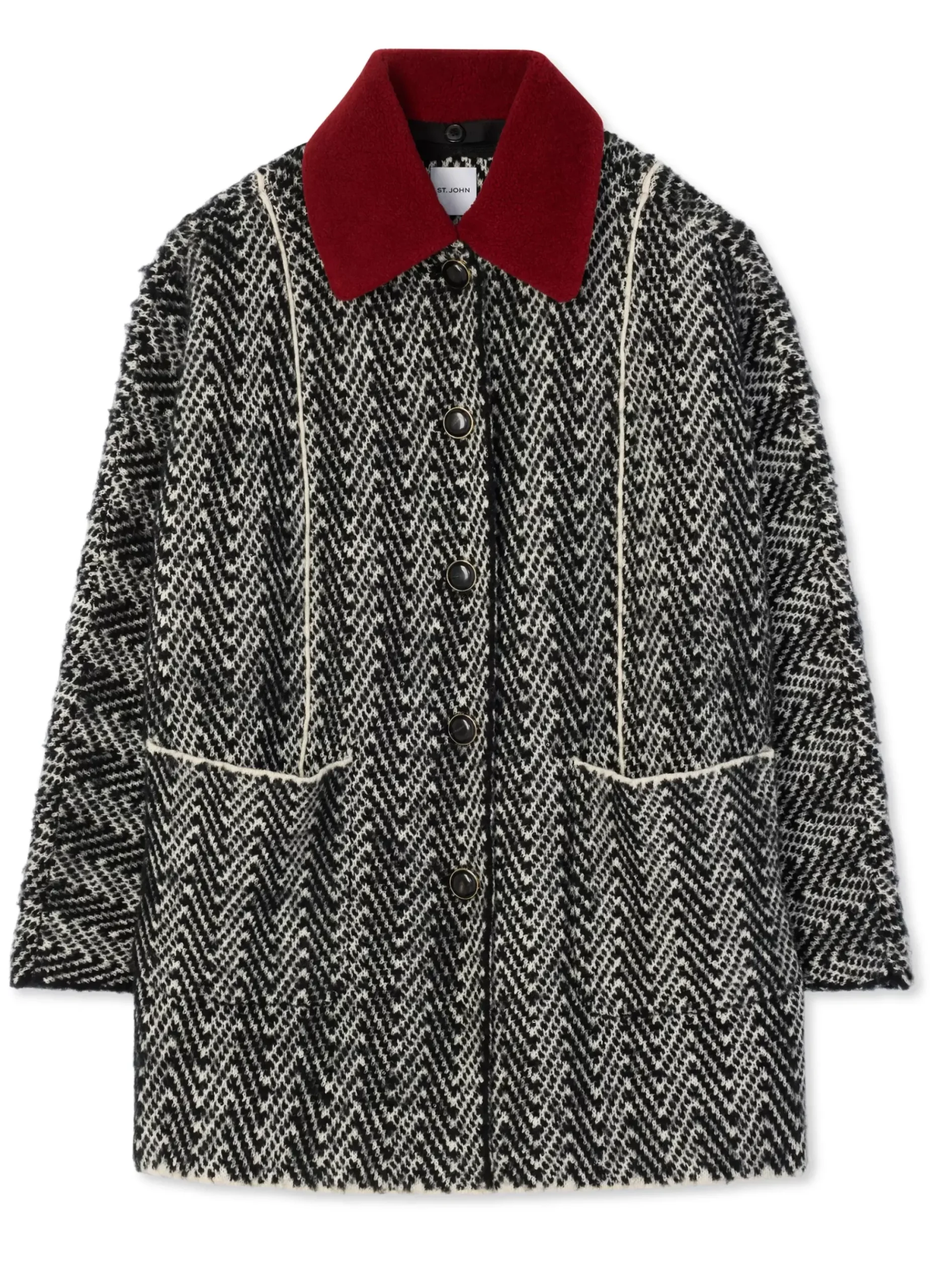 Clearance St. John Chevron Sequin Knit Coat Black/Ivory Multi