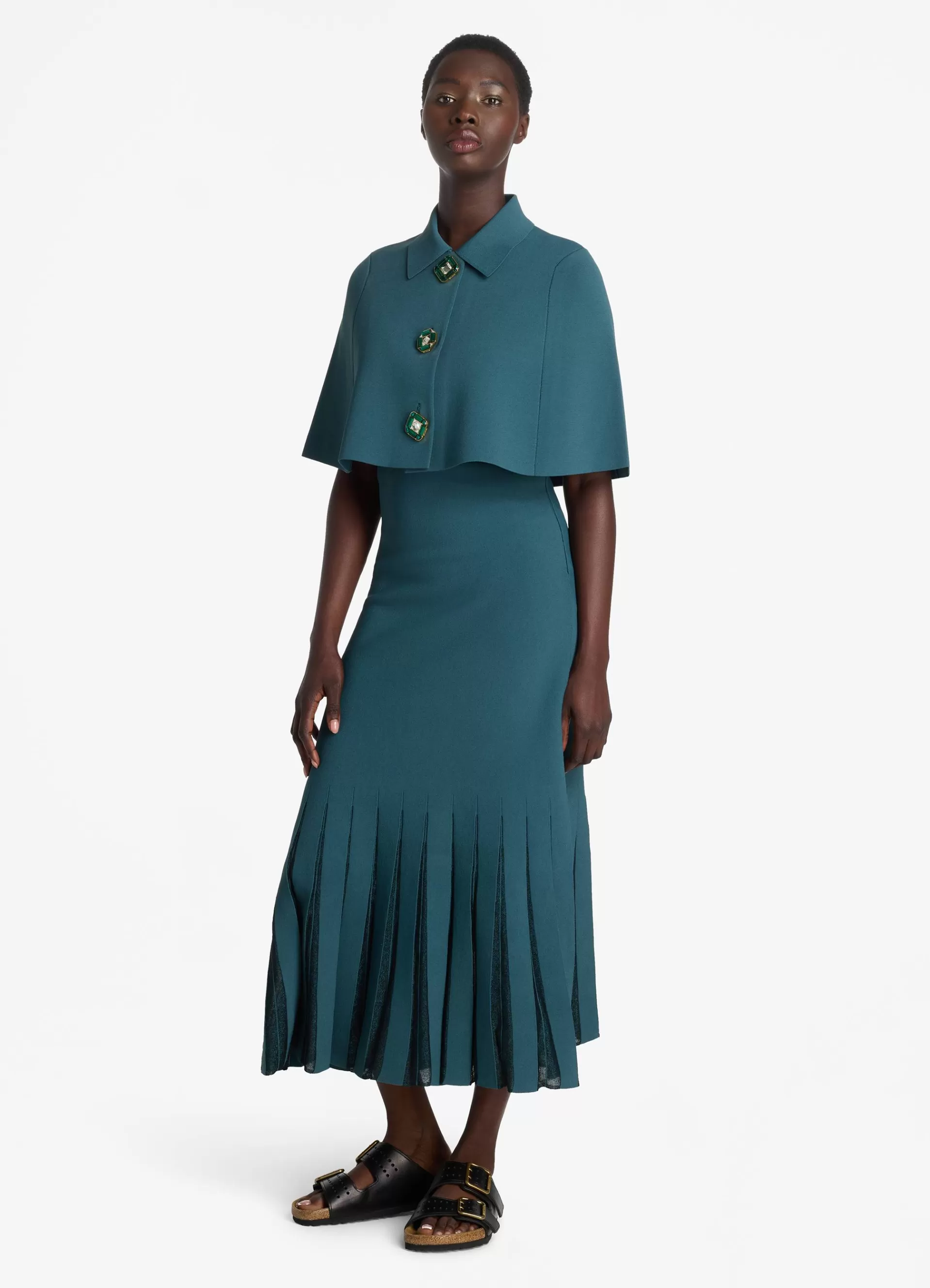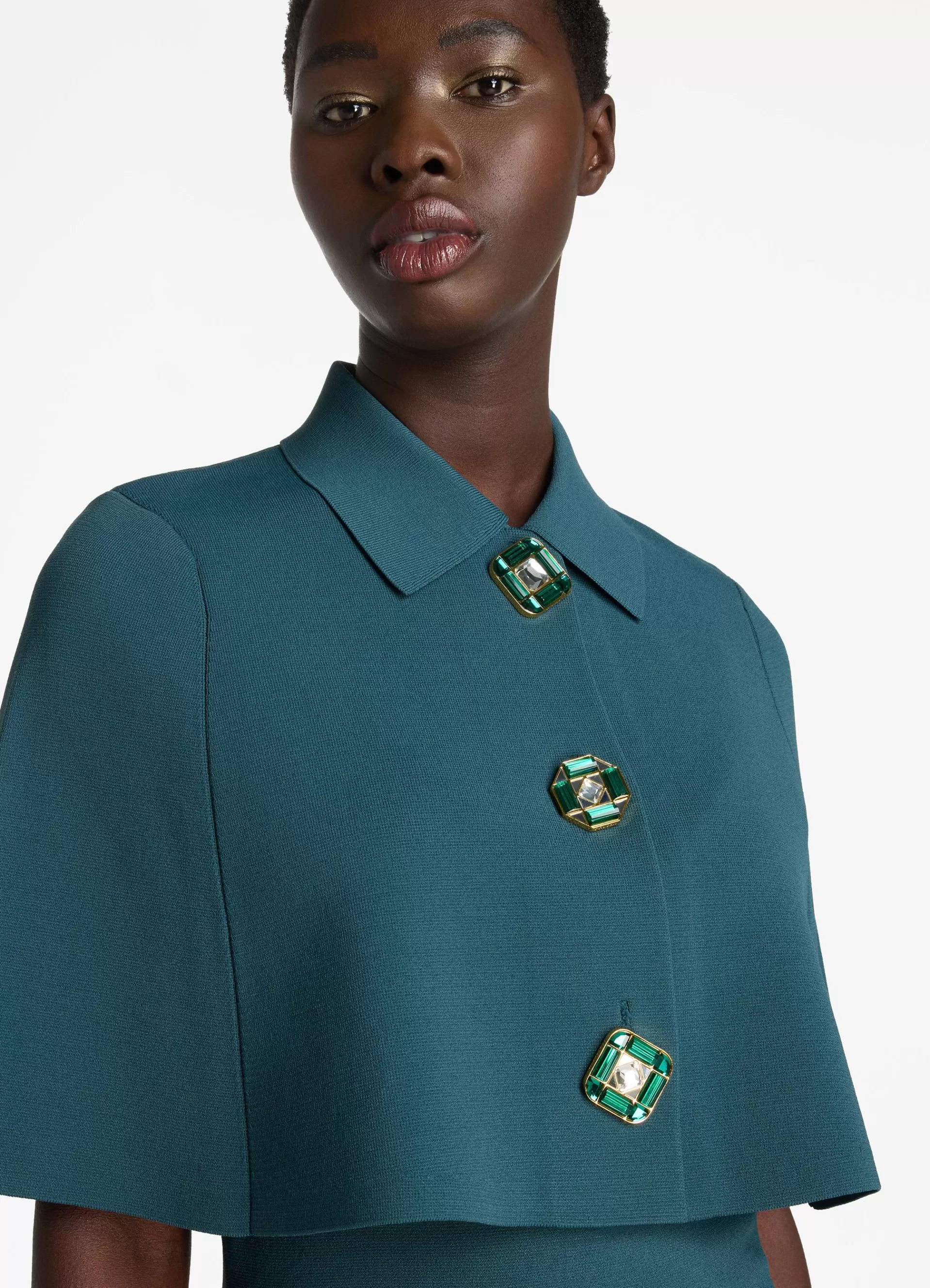 With a '60s sensibility, this collared stretch viscose evening knit cape can be worn open or closed as statement je…